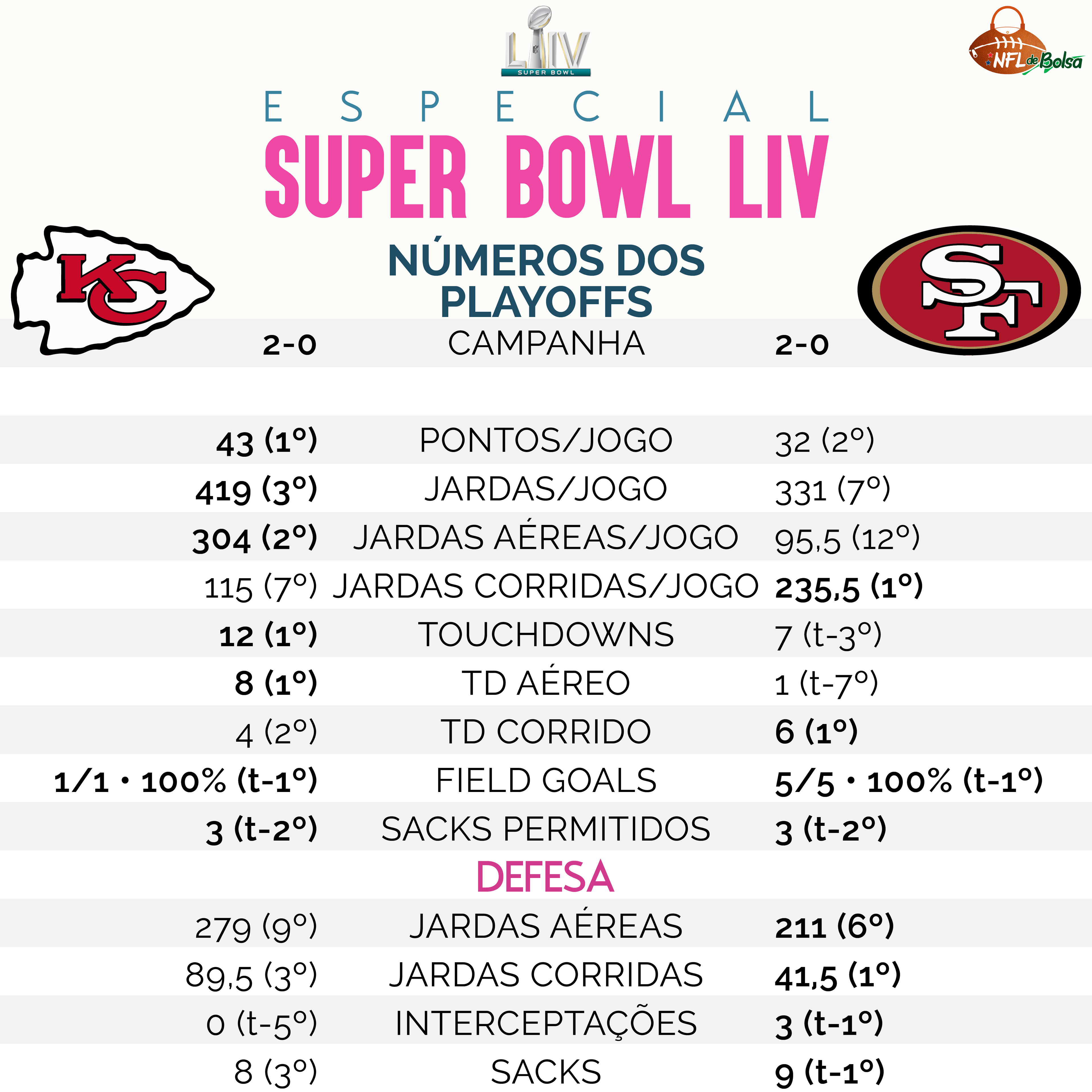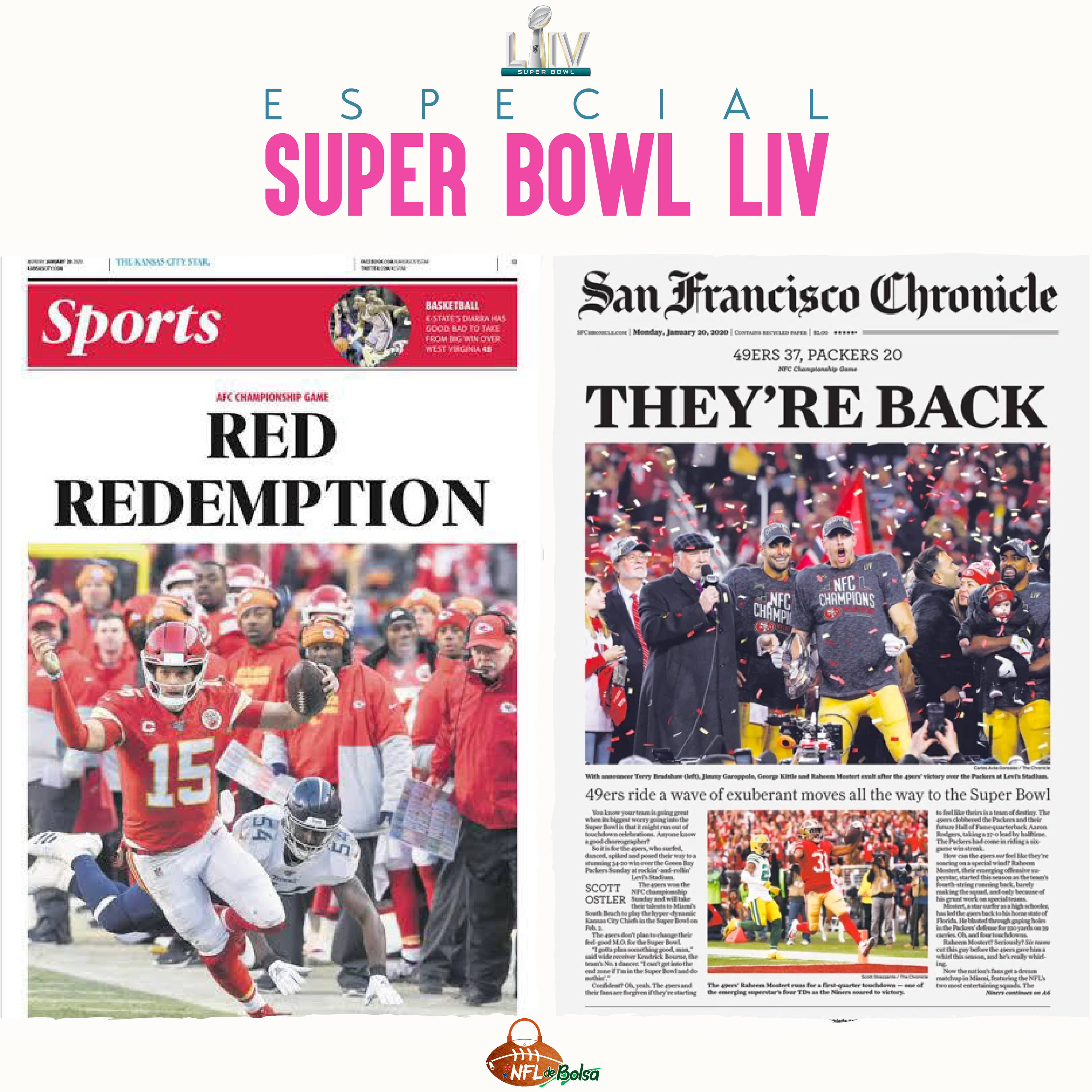 Material produzido para o Especial do Super Bowl LIV do NFL de Bolsa.